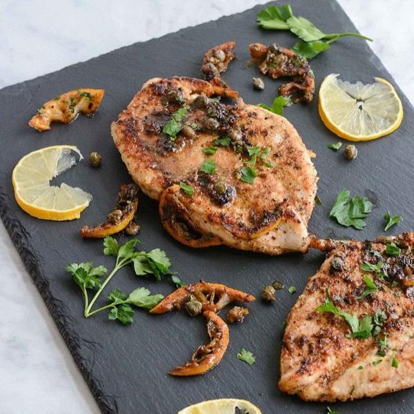 Cut the fillets of chicken breasts, and add spices as salt, pepper, parsley, do not forget to pour with lemon. White chicken meat is very healthy so it is often the choice of many people for dinner!