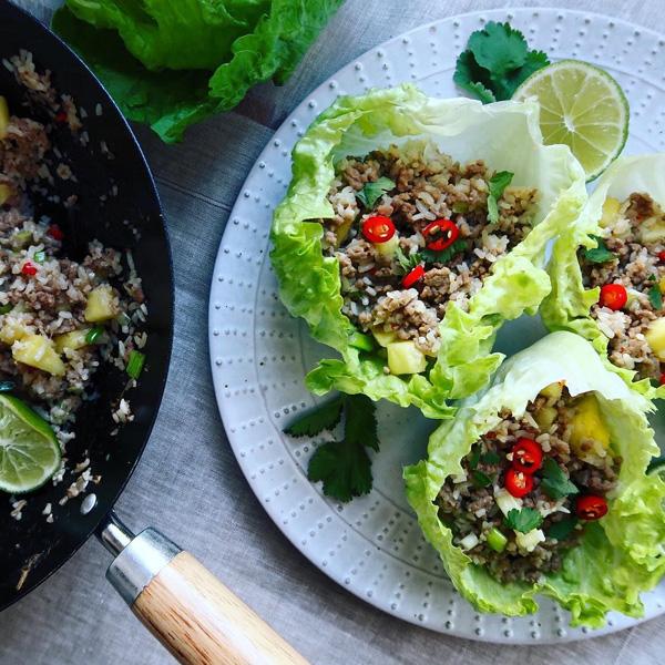 These lettuce wraps are brimming with a spicy pork and pineapple filling