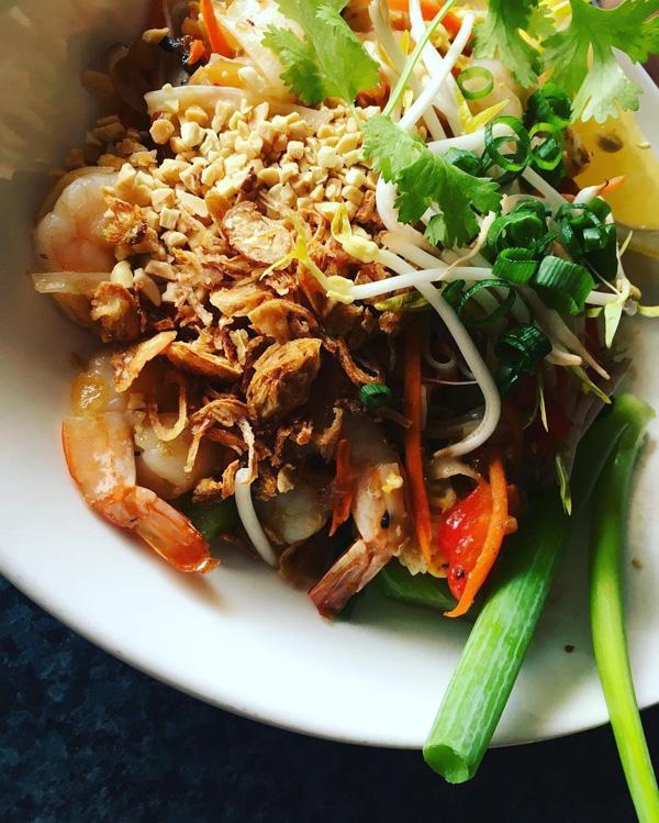 Noodle dish packed to the rafters with prawns and other scrummy goodness such as egg, bean sprouts, shallots, carrot and peanuts.