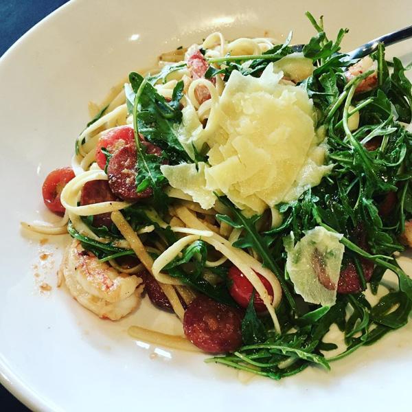 Ucculent prawns, chorizo, cherry tomatoes, wild rocket, garlic and chilli floated his boat