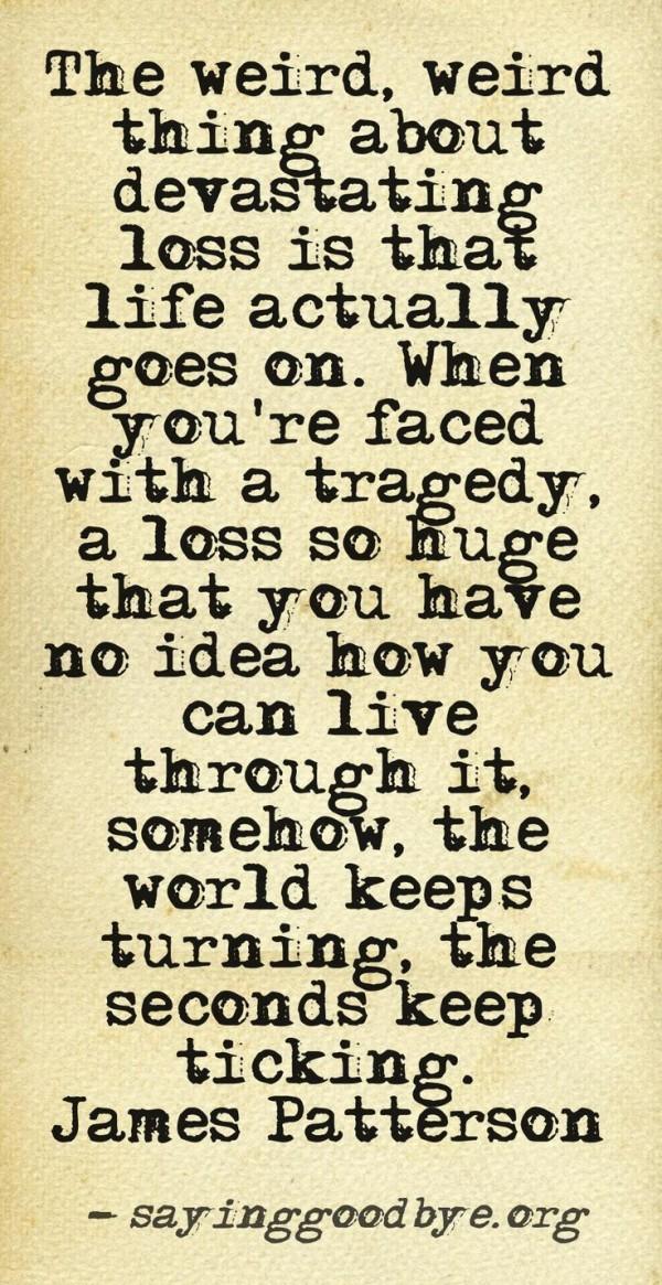 The weird, weird thing about devastating loss is that life actually goes on. When you’re faced with a tragedy, a loss so huge that you have no idea how you can live through it, somehow, the world keeps turning, the seconds keep ticking.