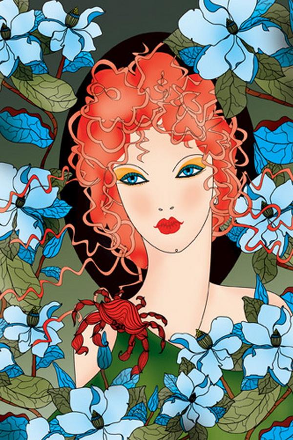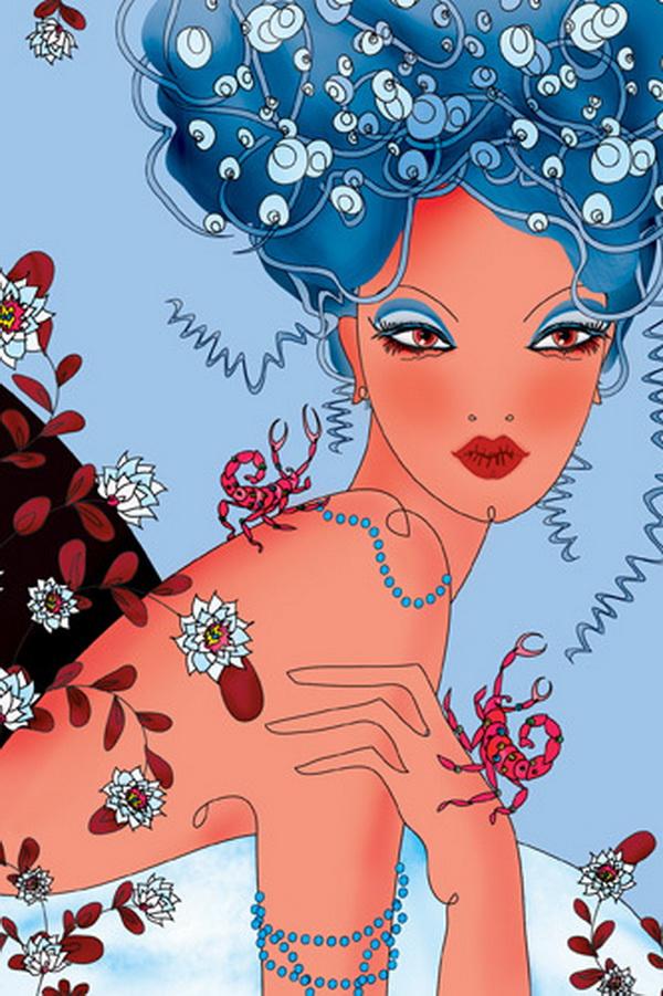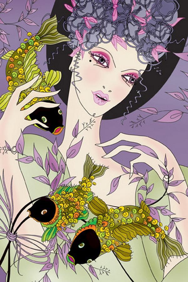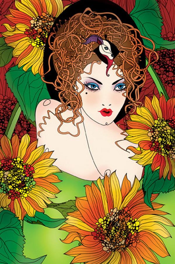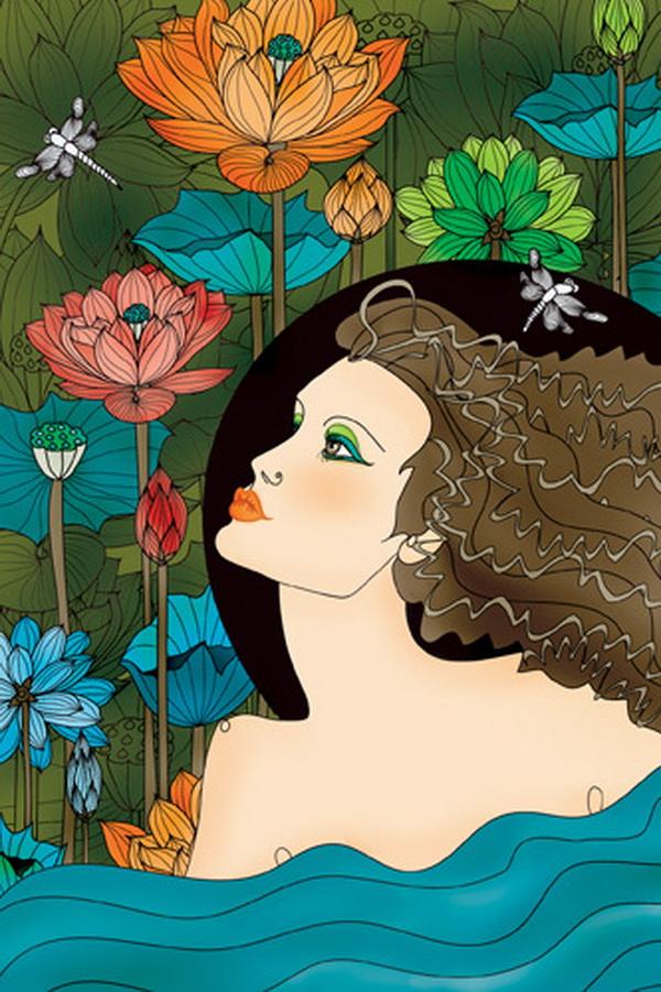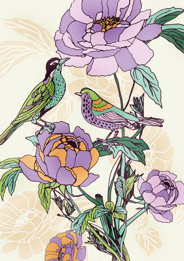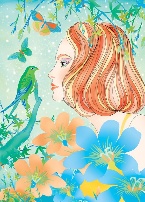 Inspired by fashion, nature and flowers, Zurich, Switzerland based illustrator created colorful intricate images balanced elegantly with line and flowing shapes.