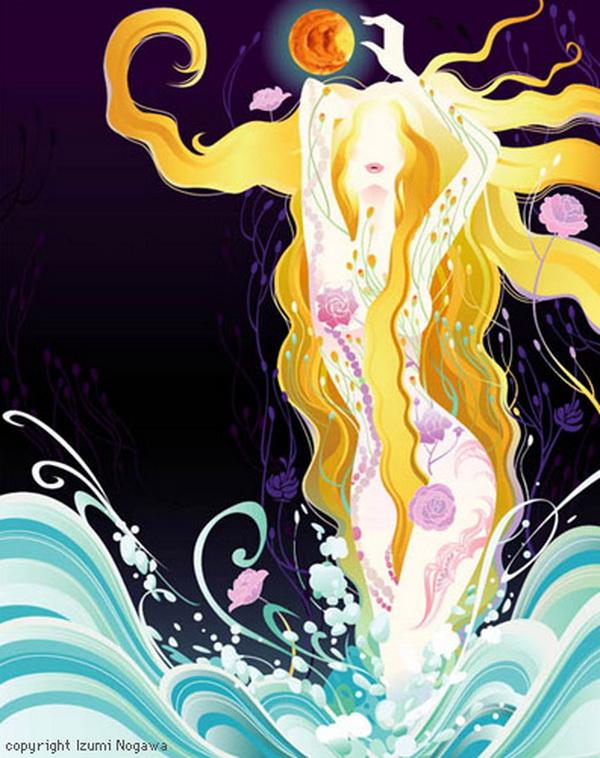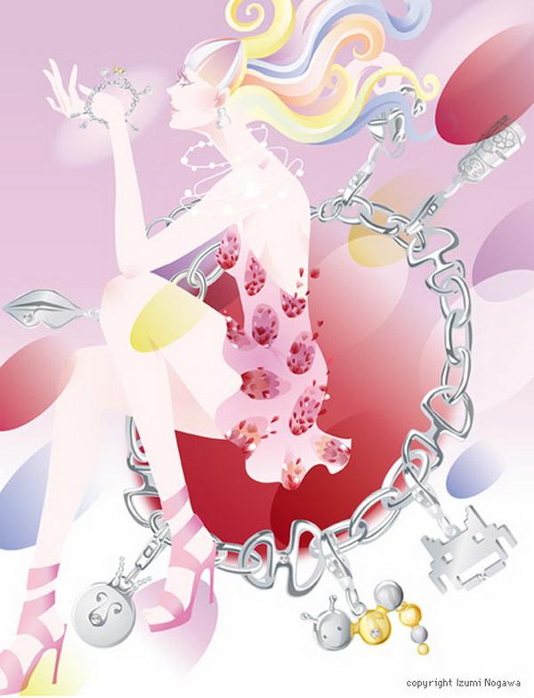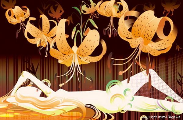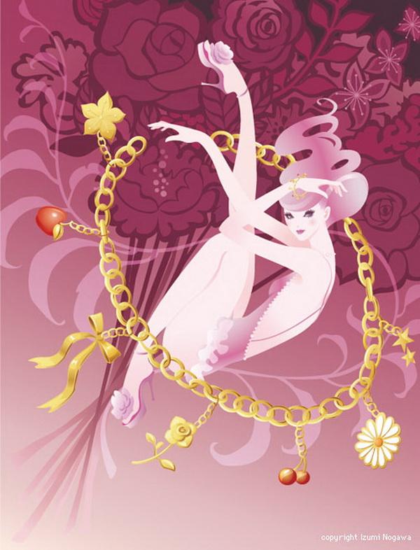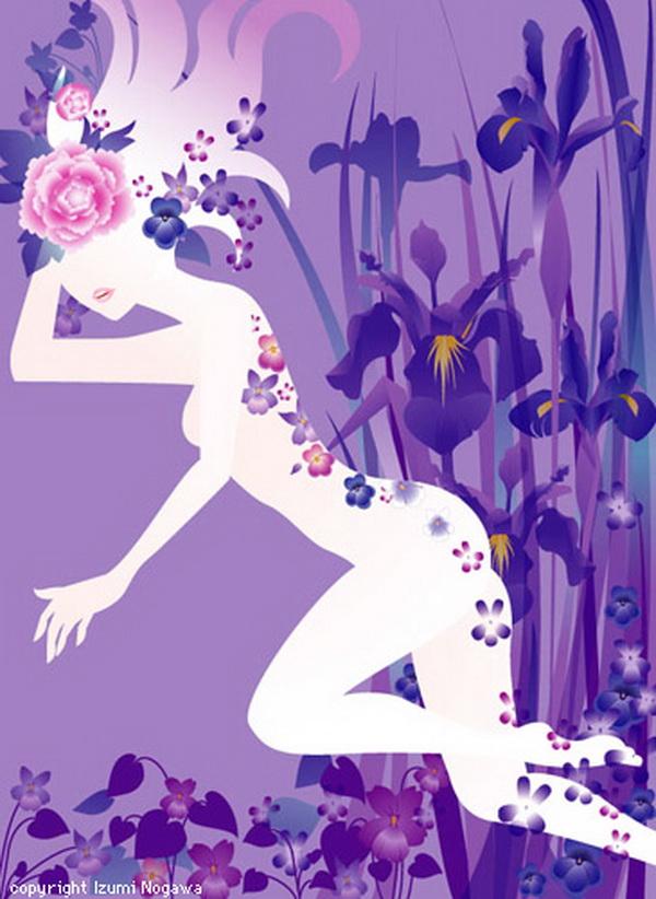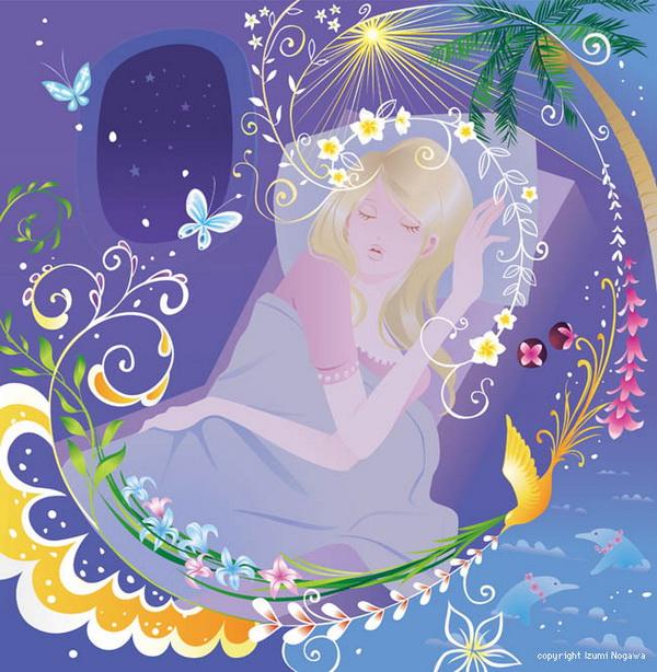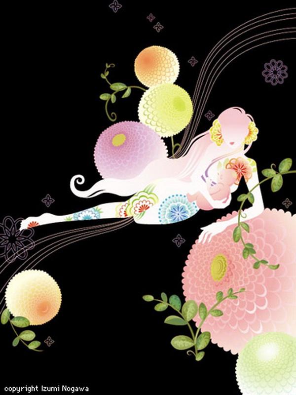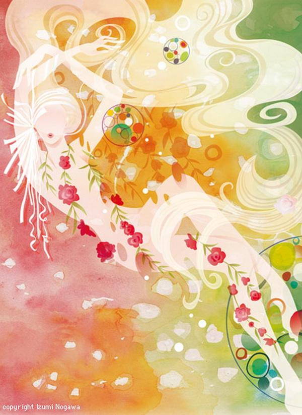 Japanese artist Izumi Nogawa created a series of illustrations of fairy tales in a unique style. The beautiful girl in her work looks enchanted in the flowers, and enjoying the floral fragrance.