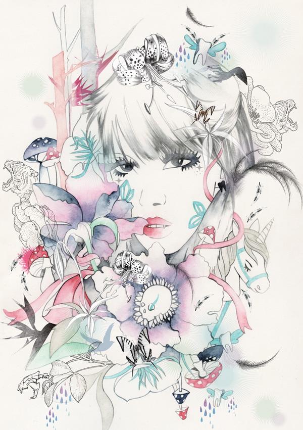 Nadia Flower is an illustrator from New Zealand who created beautiful watercolor and mixed-media illustrations. As a delicate artist, Nadia weaves her imagination for clients around the world, applying her imagery to a range of visual mediums.