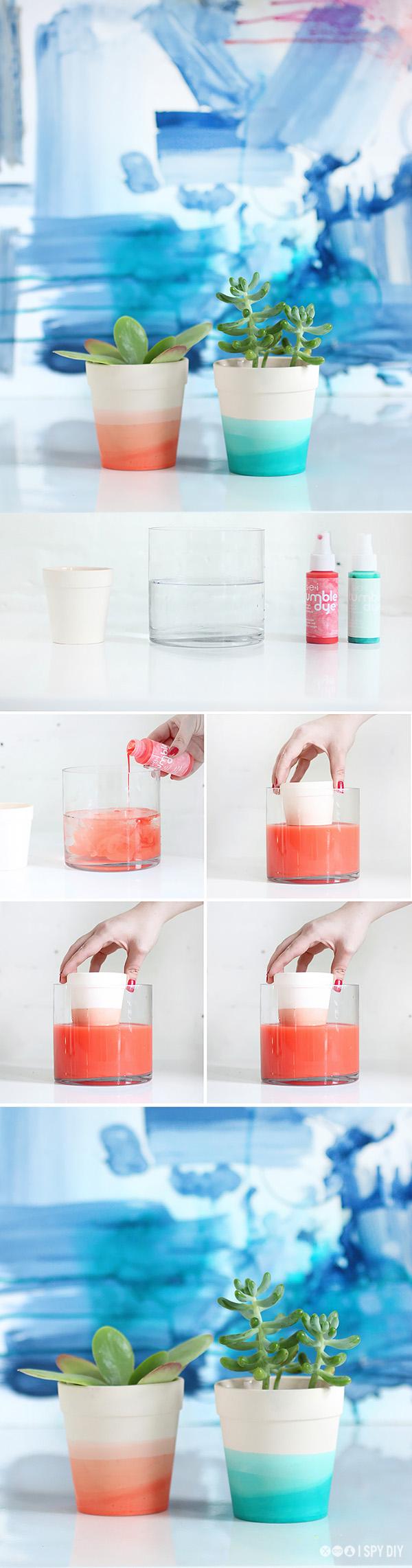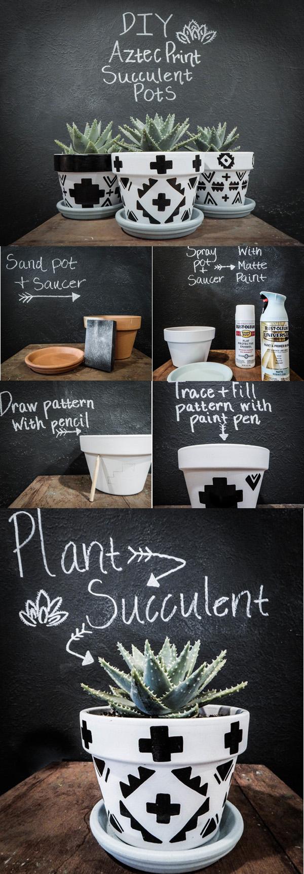 You can paint the pots by pulling on them the lace or some interesting material and then apply spray, for example. When you take the lace, there will remain patterns as lace.