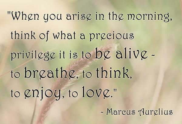 When you arise in the morning, think of what a previous privilege it it to be alive, to breathe, to think, to enjoy, to love. ~ Marcus Aurelius