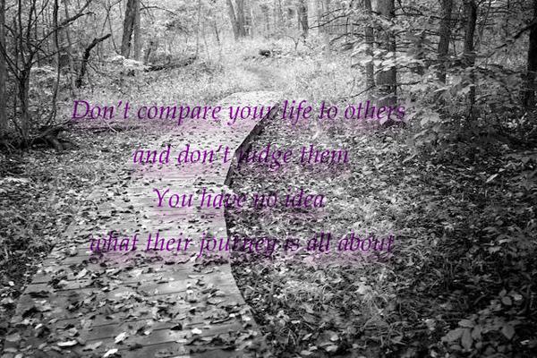 Don’t compare your life to others and don’t judge them. You have no idea what their journey is all about ~ Unknown
