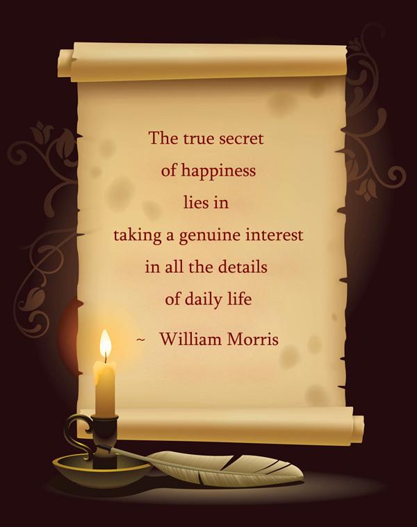 The true secret of happiness lies in taking a genuine interest in all the details of daily life. ~ William Morris