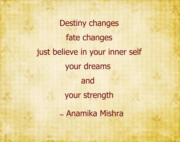 Destiny changes, fate changes, just believe in your inner self, your dreams and your strength ~ Anamika Mishra