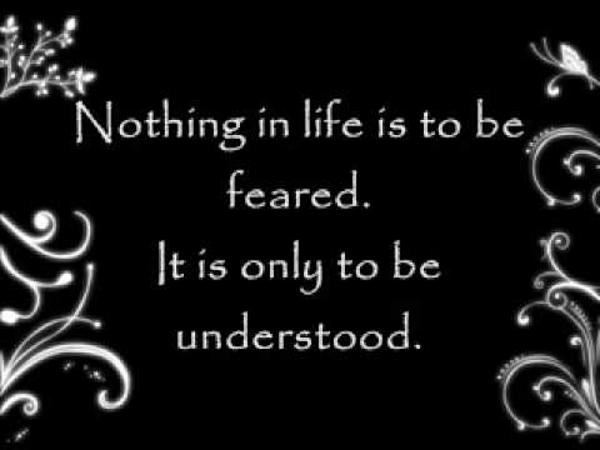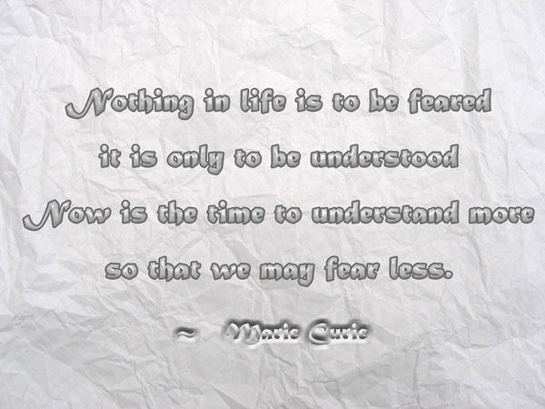 Nothing in life is to be feared, it is only to be understood. Now is the time to understand more, so that we may fear less. ~ Marie Curie