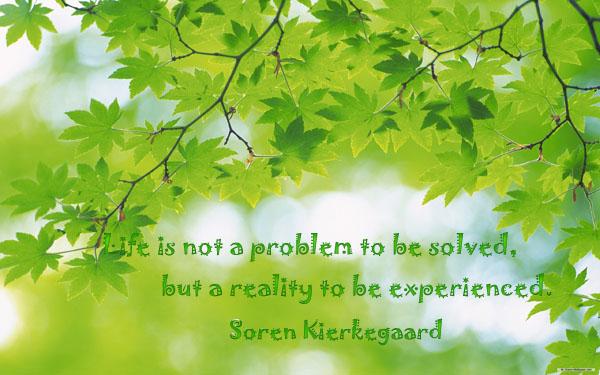Life is not a problem to be solved, but a reality to be experienced. ~ Soren Kierkegaard