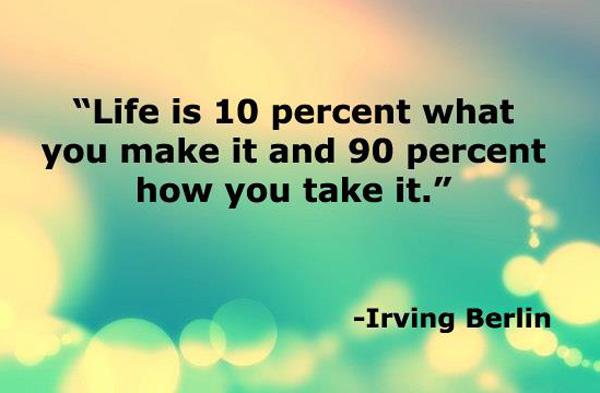 Life is 10 percent what you make it, and 90 percent how you take it. ~ Irving Berlin
