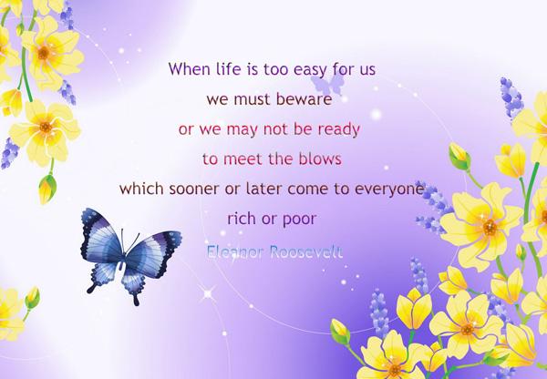 When life is too easy for us, we must beware or we may not be ready to meet the blows which sooner or later come to everyone, rich or poor. ~ Eleanor Roosevelt