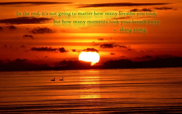 In the end, it’s not going to matter how many breaths you took, but how many moments took your breath away ~ shing xiong