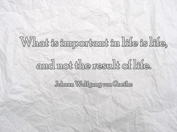 What is important in life is life, and not the result of life. ~ Johann Wolfgang von Goethe