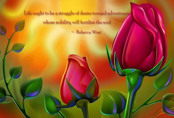 Life ought to be a struggle of desire toward adventures whose nobility will fertilize the soul. ~ Rebecca West