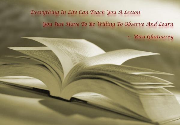 Everything In Life Can Teach You A Lesson, You Just Have To Be Willing To Observe And Learn. ~ Ritu Ghatourey