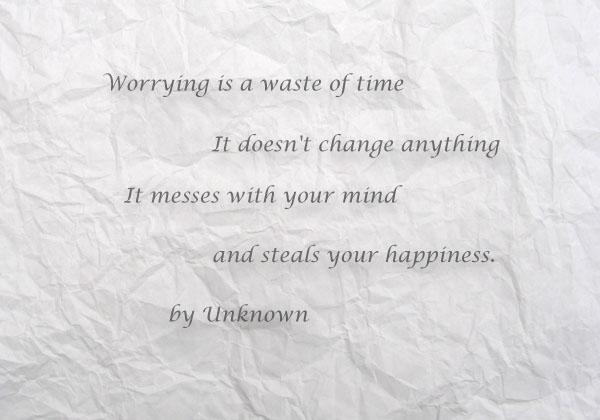 Worrying is a waste of time. It doesn’t change anything. It messes with your mind and steals your happiness. ~ Unknown