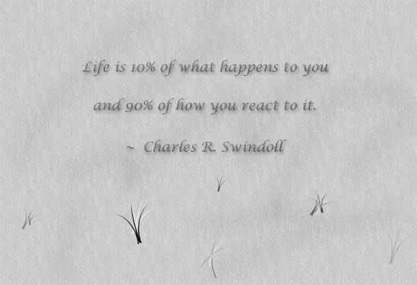 Life is 10% of what happens to you and 90% of how you react to it. ~ Charles R. Swindoll