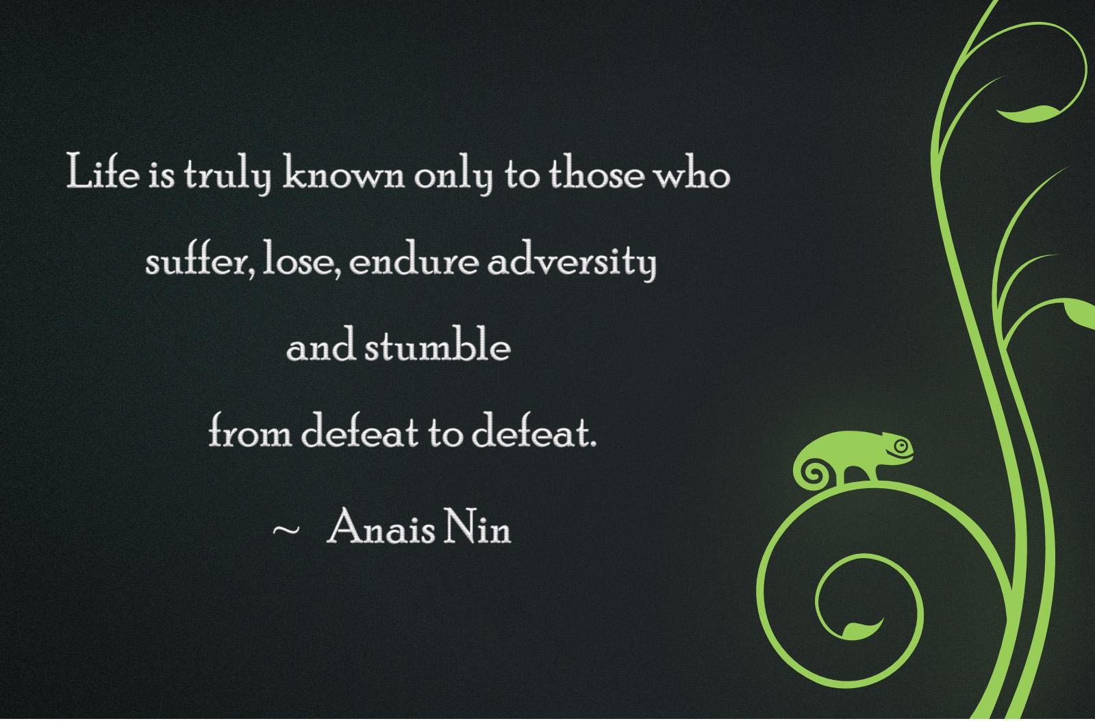 Life is truly known only to those who suffer, lose, endure adversity and stumble from defeat to defeat. ~ Anais Nin