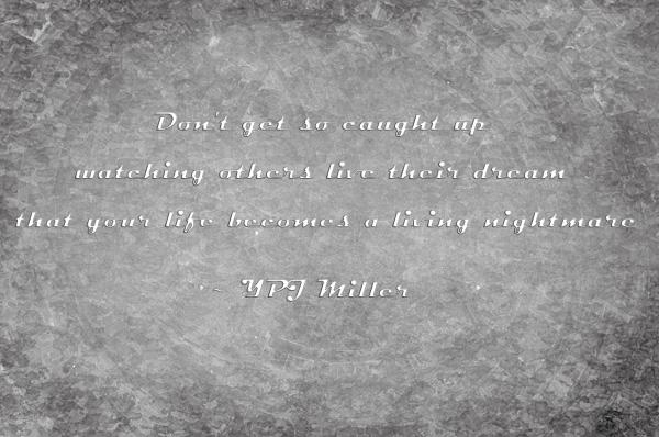 Don’t get so caught up watching others live their dream that your life becomes a living nightmare. ~ YPJ Miller