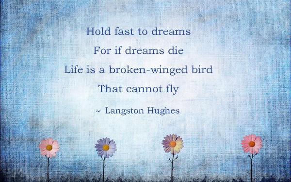 Hold fast to dreams, For if dreams die Life is a broken-winged bird, That cannot fly. ~ Langston Hughes