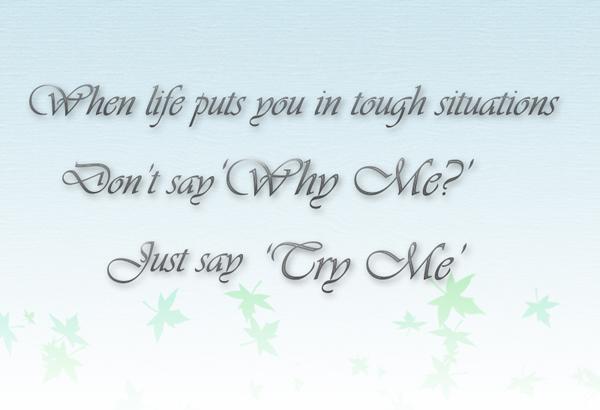 When life puts you in tough situations, don’t say “Why me?”, just say “Try me”. ~ Unknown