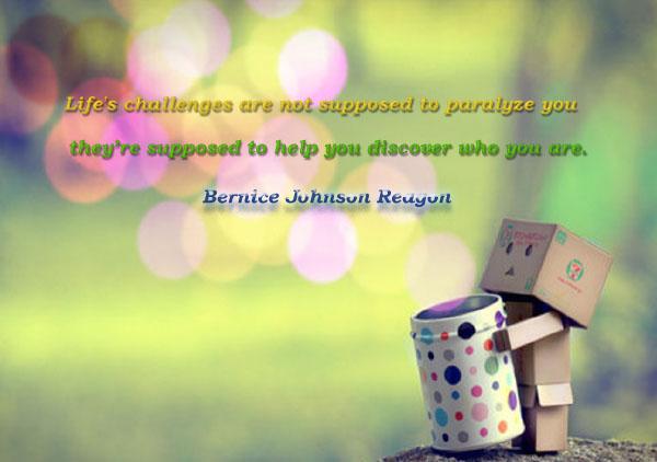 Life’s challenges are not supposed to paralyze you, they’re supposed to help you discover who you are. ~ Bernice Johnson Reagon