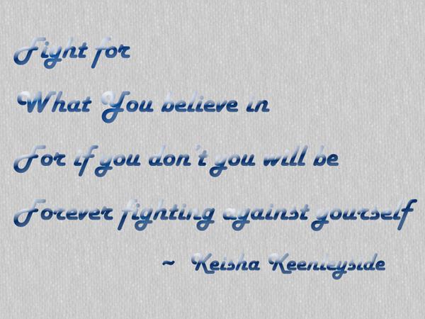 Fight for what you believe in,for if you don’t you will be forever fighting against yourself. ~ Keisha Keenleyside