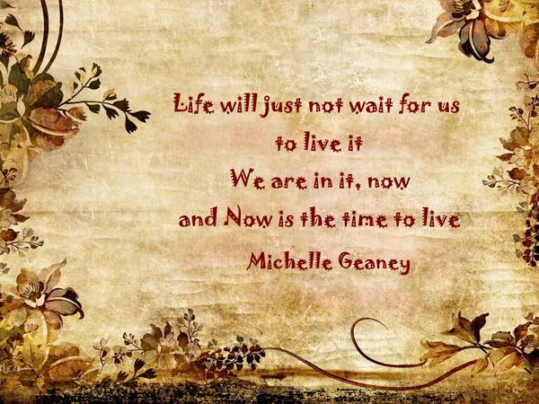Life will just not wait for us to live it. We are in it, now, and Now is the time to Live ~ Michelle Geaney