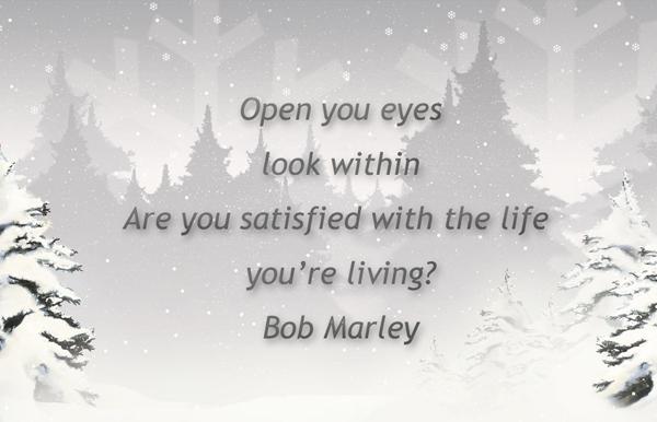 Open your eyes, look within. Are you satisfied with the life you’re living? ~ Bob Marley
