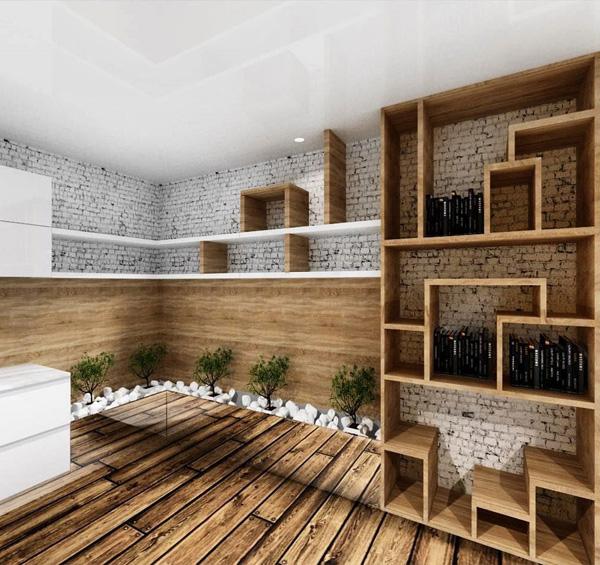 Cozy place for relaxation, reading books and enjoy with your loved one. I would only add some beautiful fireplace in the opposite part of the rooms.