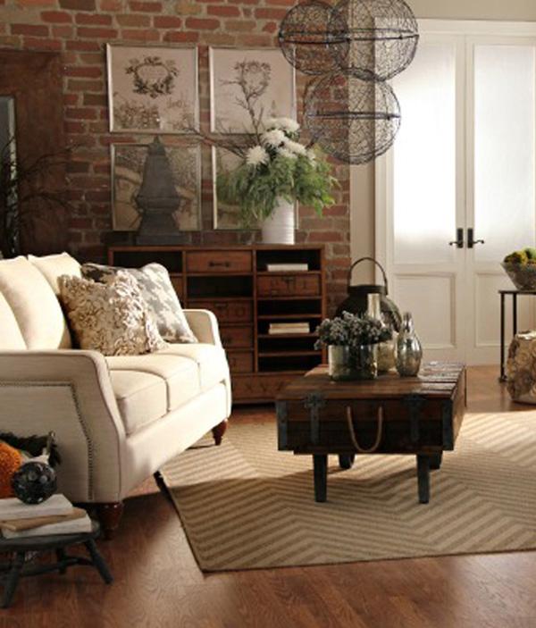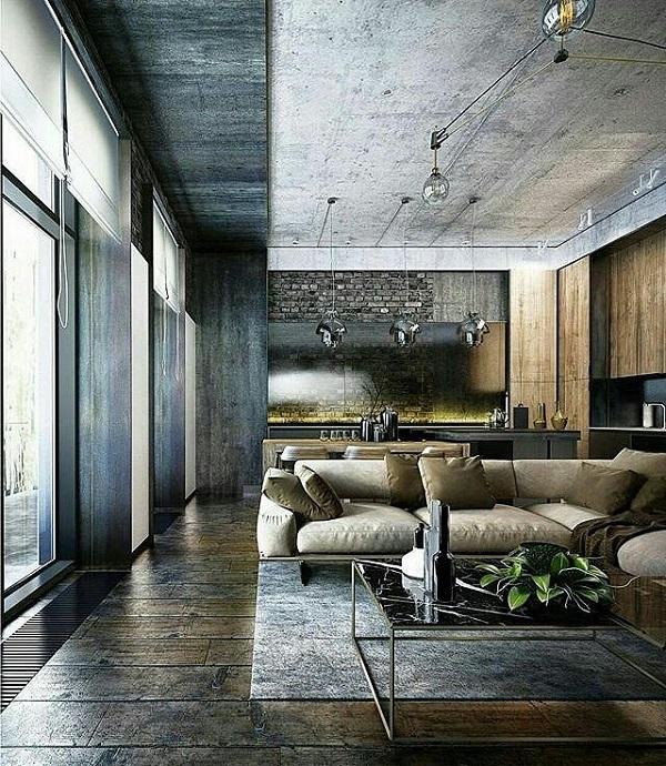 This interior design is excellent in two styles with rustic brick walls and modern minimalist home decor. The ceiling beams, fireplaces, picture frame on the wall, gives cozy feel in the living room. It definitely heat your soul in the cold winter months.