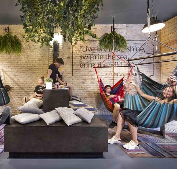 Very imaginative decorations in the coffee shop. The sophisticated look of this extension is achieved without a lot of effort and investment.