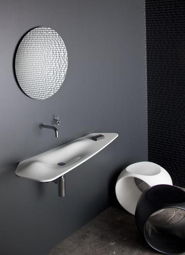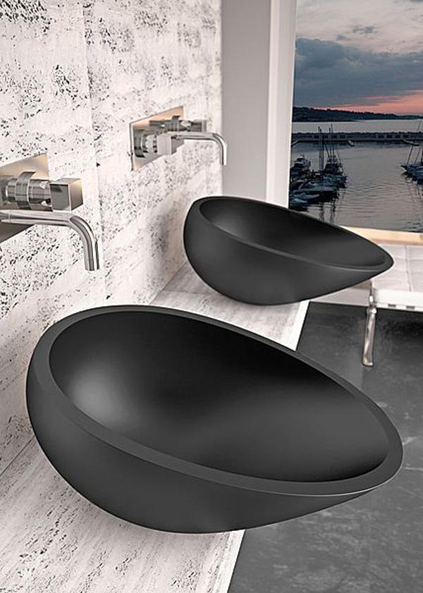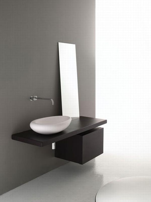 White is the color of most bathroom sinks. As a sanitary appliance, the bathroom sink is expected to process the ability of self cleaning. White is the color free of debris, representing cleanness, which is mostly recognized . The color of a ceramic sink normally comes from its firing process at high temperature. Its color is permanent unless the surface is broken. Some creative designs may use deep colors, like black as the color of the sink. Black is cool if it’s well integrated in the overall decoration of the room.