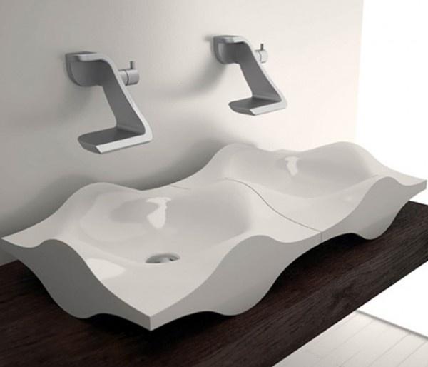 Wall mounted double bathroom sinks with simple design. Absolute space saving piece.