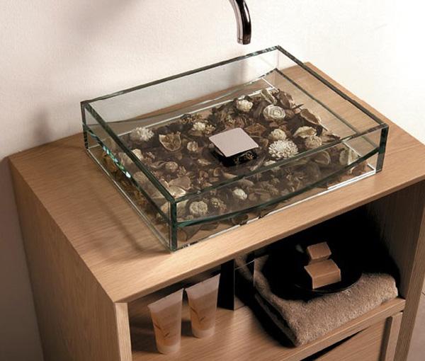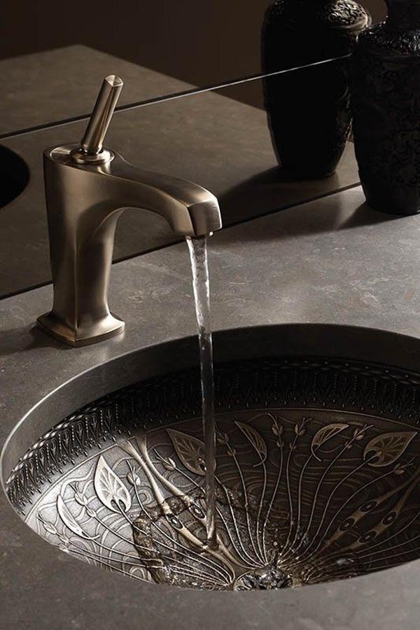 This bathroom sink design is perfect for animal lovers and those adoring proximity of nature. The washbowl is mounted in a nice goldfish bowl. You never have to worry about neglecting the cute goldfish.