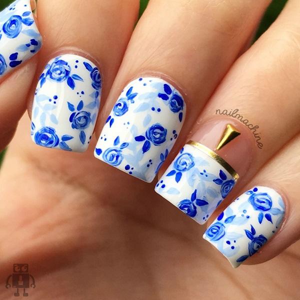 Roses are often a choice of gentle and romantic ladies. Roses as a detail on nails is especially beautiful and effective in warm spring and summer days.