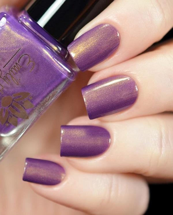 The diamond gloss in the nail polish contributes to its more luxurious appearance. The mystic purple nails with diamond gloss in it will surely look very stylish on every hand.
