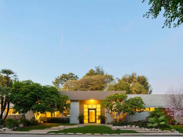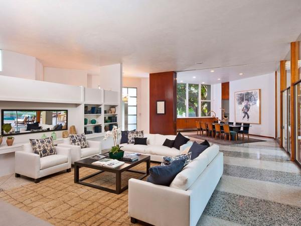 Designed by William Stephenson in 1956, the renovated, 5,060 square foot house in Beverly Hills, California. It features 12 foot ceilings in the living area, with floor-to-ceiling doors and windows in all rooms.