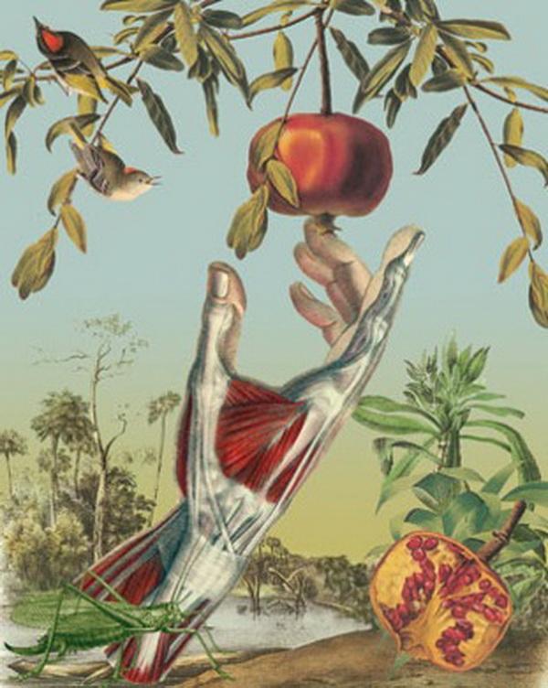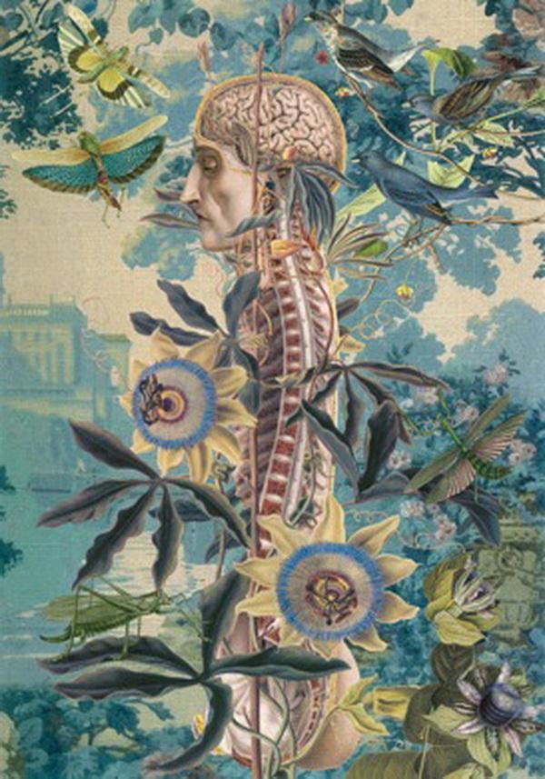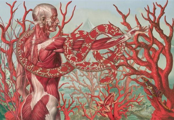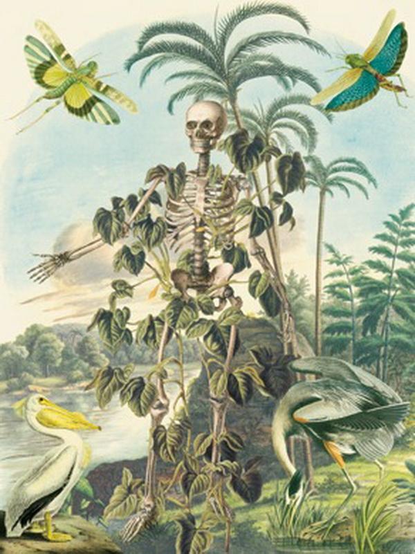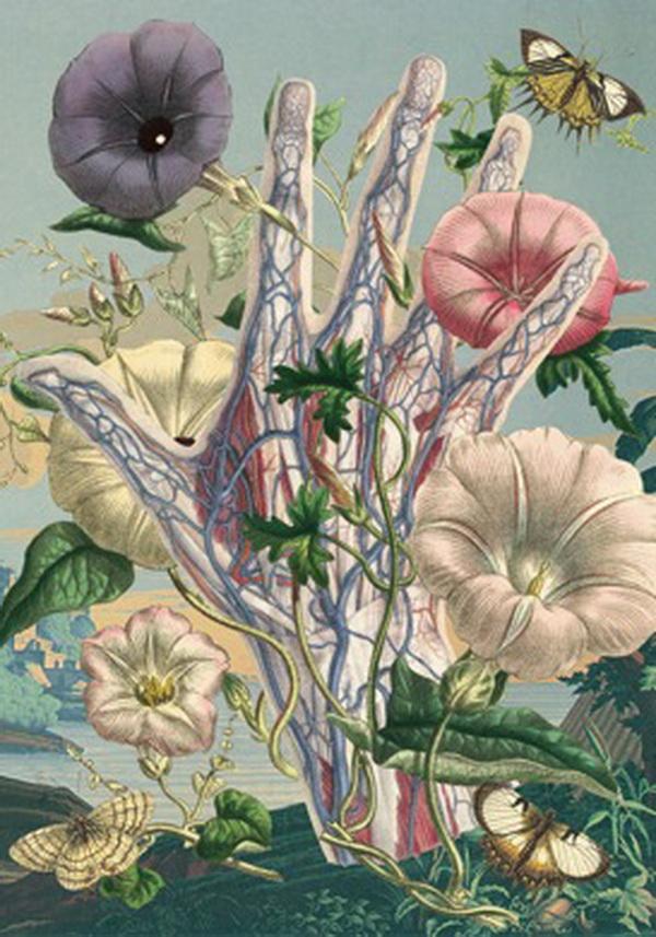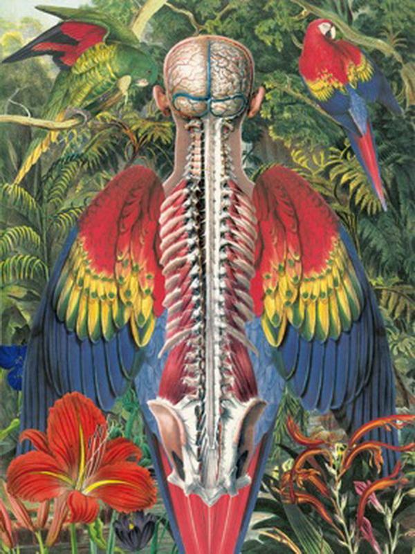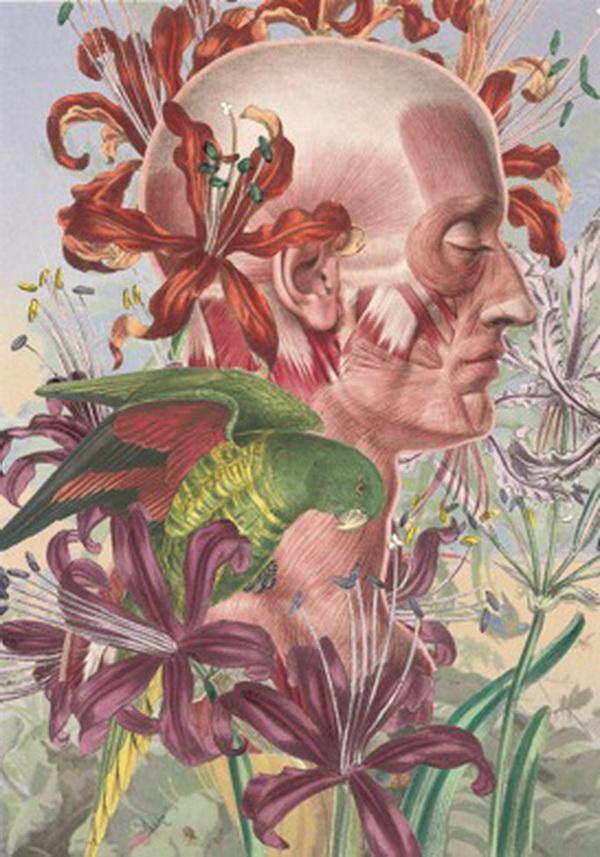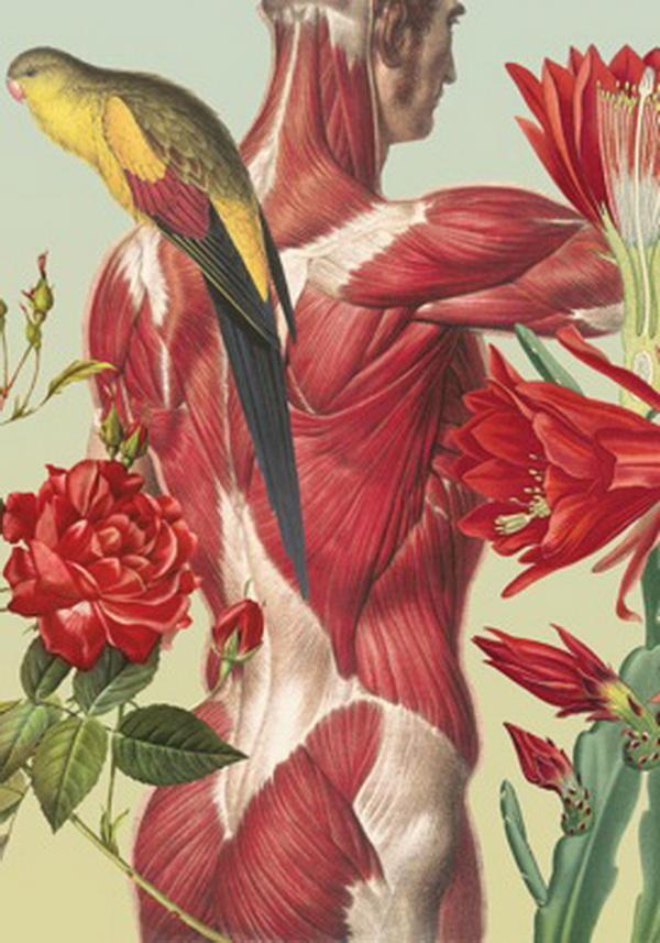 As a personal project, he created his awesome “Ciencias Naturales” series, which combines anatomical drawings with illustrations of flora and fauna.