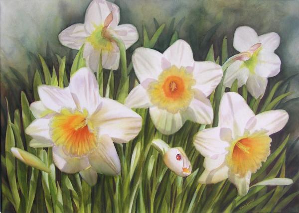 Doris’ painting style has been described as ‘Romantic Realism’. Painting the beauty of nature is a passion. She’s captivated by the sunshine, the shadows, the light and the glistening of a raindrop.