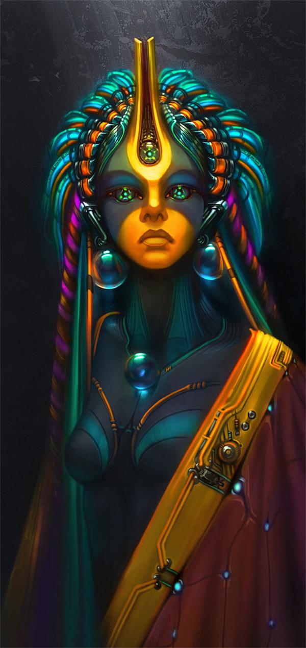 The high queen Abstract Digital Art by Chris Cold. He likes to create fantasy and sci-fi artworks with vibrant colors.