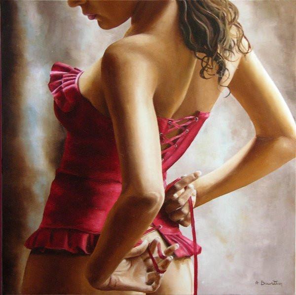 Annick Bouvattier is a figurative painter based in Paris. Annick captures seemingly insignificant gestures in the everyday lives of beautiful women, trivial moments, fleeting glances, words unspoken, speechless stories. She is a painter of silences, silences that many a beholder and collector has heard and savoured.