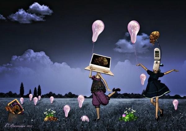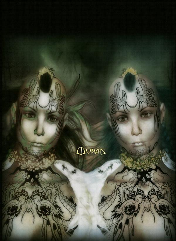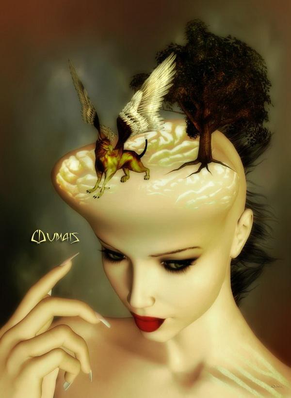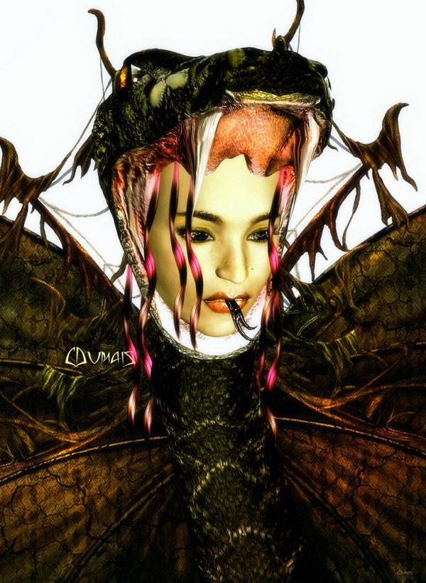 Initially she worked with traditional material as oil painting, red ochre, textile and objects from nature. Today she creates art, illustrations and design by using the new media, such as computer software, Poser, 3D Max, Photoshop, painter etc.