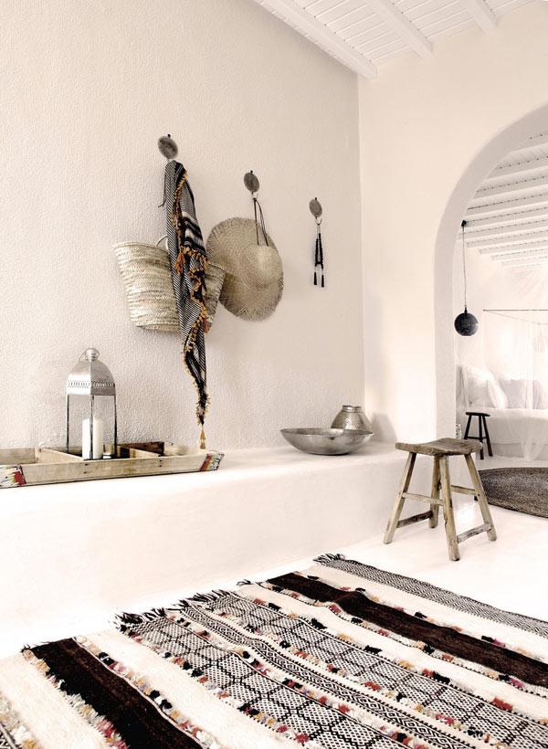 The “bohemian 60s meets Gypsy style” atmosphere was created by Berlin-based architectural studio Lambs & Lions with a few basic but important things in mind – guests are welcomed with a heat-repelling pure white architecture softened with the use of stone, given the possibility of either socializing with fellow travelers or enjoying interrupted private experiences alongside Greek surroundings and respected with an eclectic choice of accents. Its duality – both encouraging interaction between guests and offering the comfort of a private retreat – makes this island retreat a perfect spot for a carefree vacation.