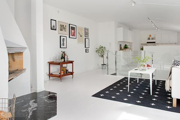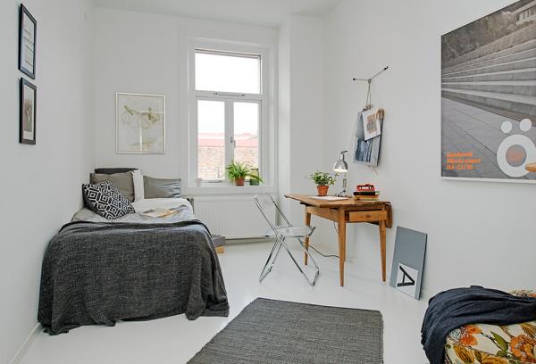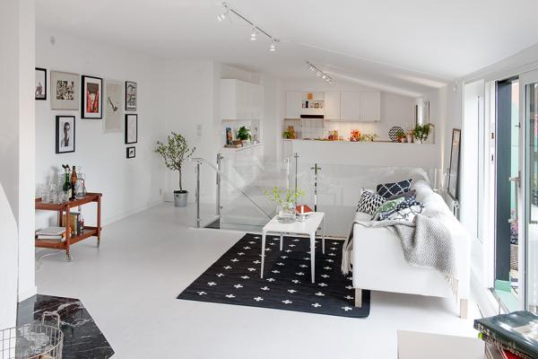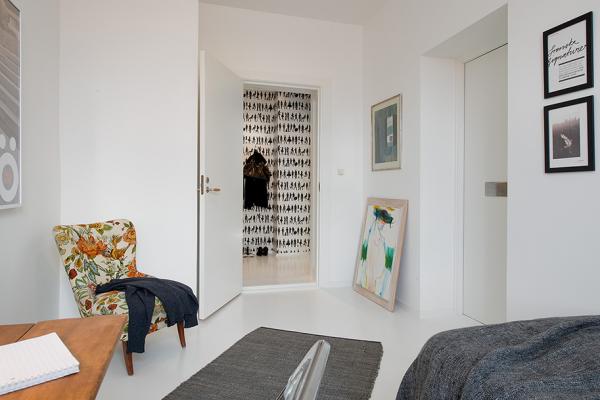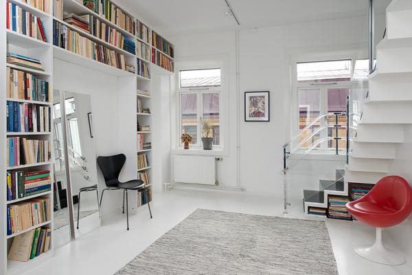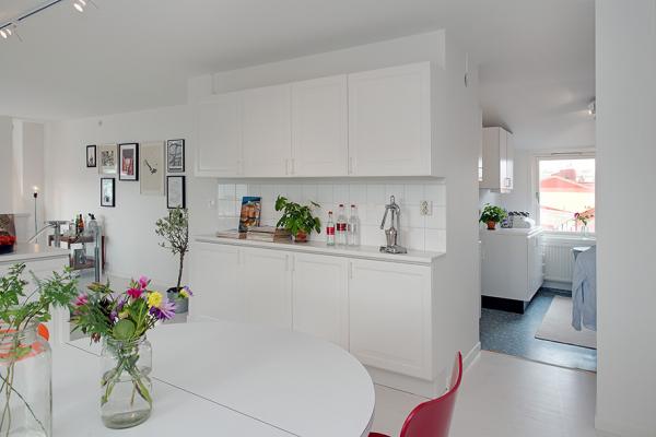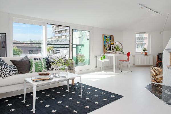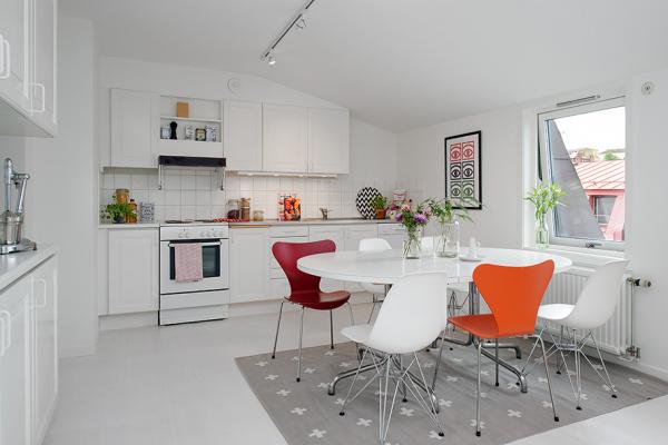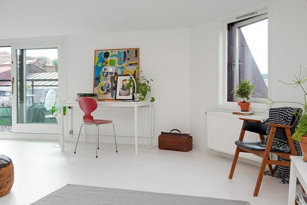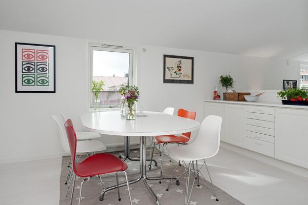 The attic apartment located in the central Linnéstaden area in Gothenburg has a total of three bedrooms, occupying a surface of 132 square meters. Its size was enough for designing an almost idyllic living space, where subtle color additions create perfect contrasts with the white walls and floors.