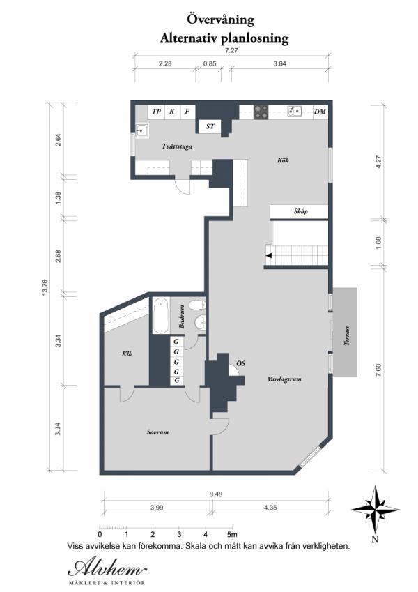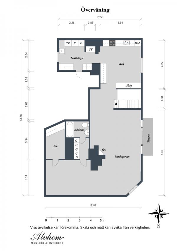 The living room is the social focal zone of the duplex, with its open floor plan, fireplace, chimney and pitched roof. As darkness falls over the rooftops of Linnéstaden, guests are welcomed to curl up around the fireplace. Three large glass windows (floor to ceiling) lead out to the terrace. Despite its modest size, this outdoor space is perfect for contemplation during precious summer days.