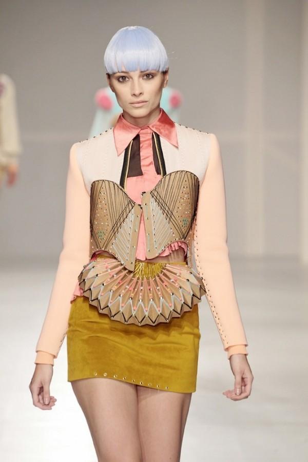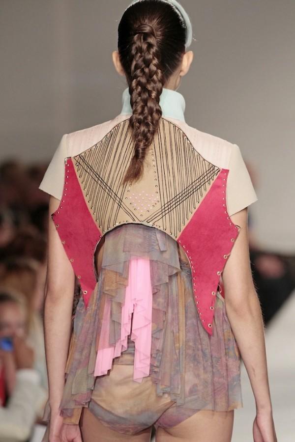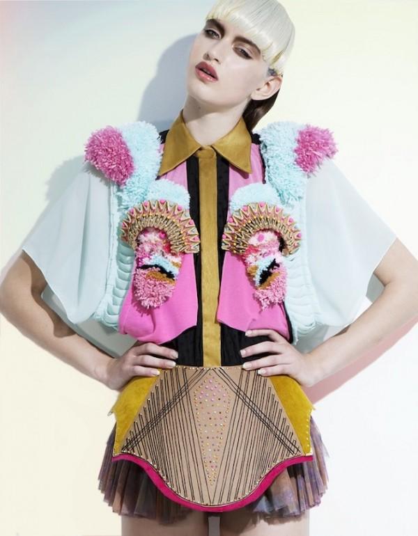 Dutch fashion designer Yvonne Kwok received recognition on the fashion scene when she became one of the finalists at the London Graduate Fashion Week in the Best International Collection category. Inspired by tpunk culture and marionettes, her work is full of bright colors, mix of fabrics and deconstructed silhouettes.