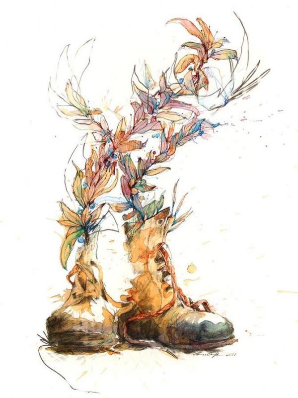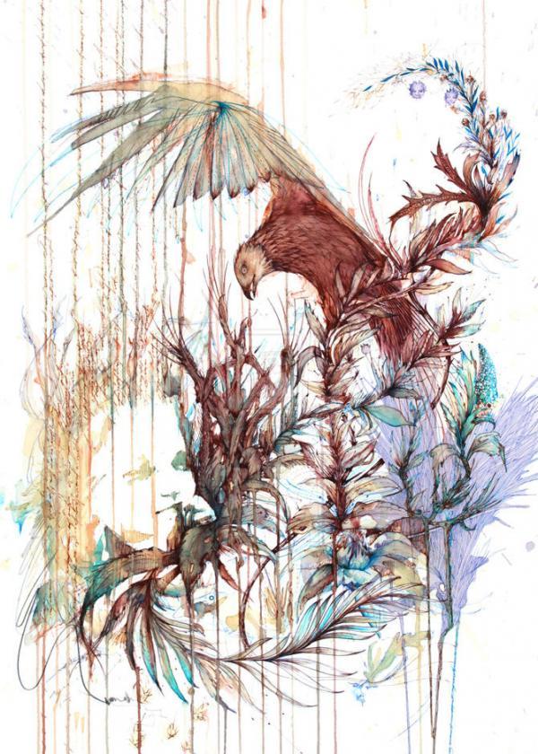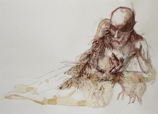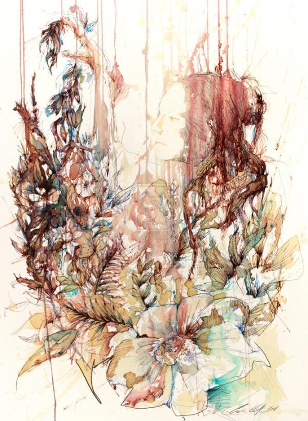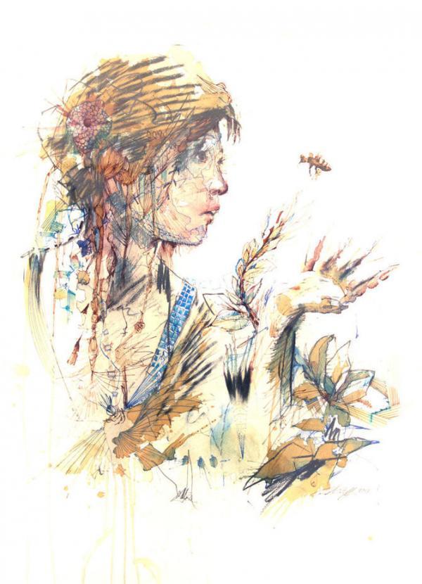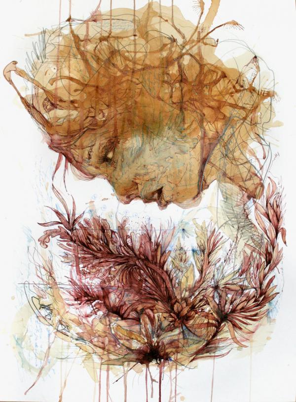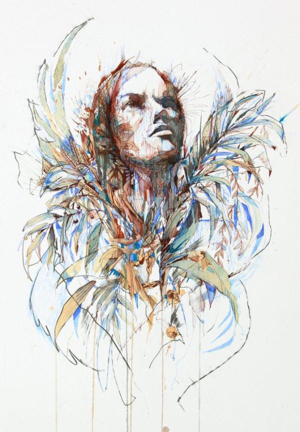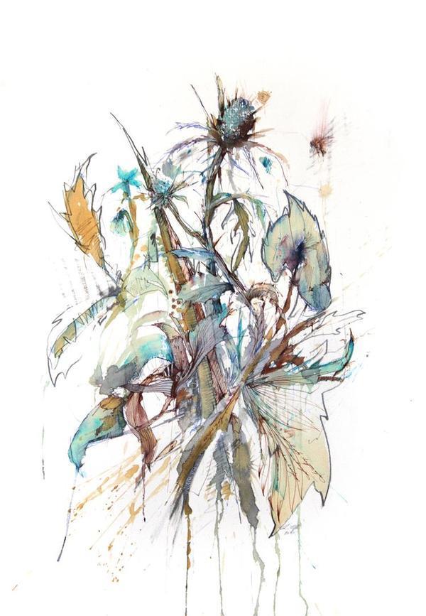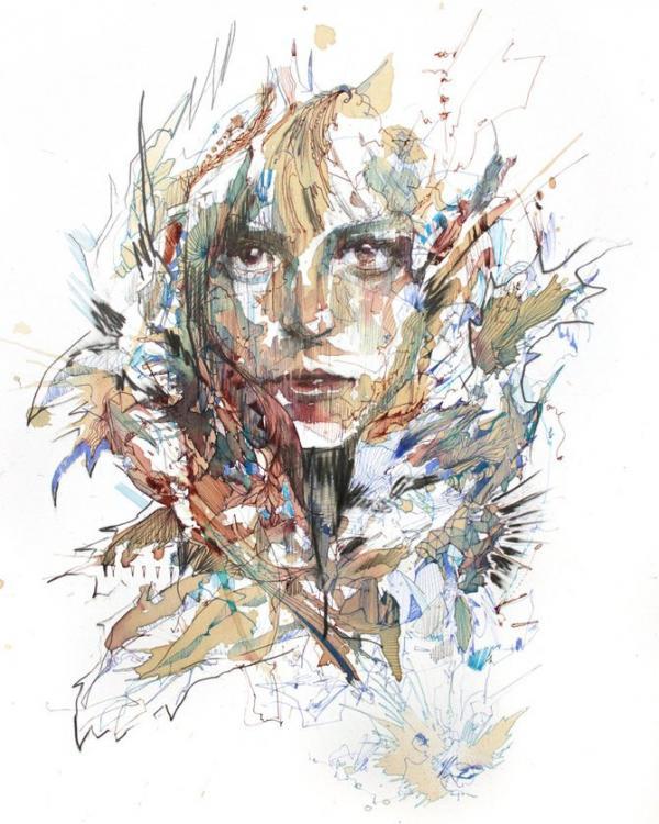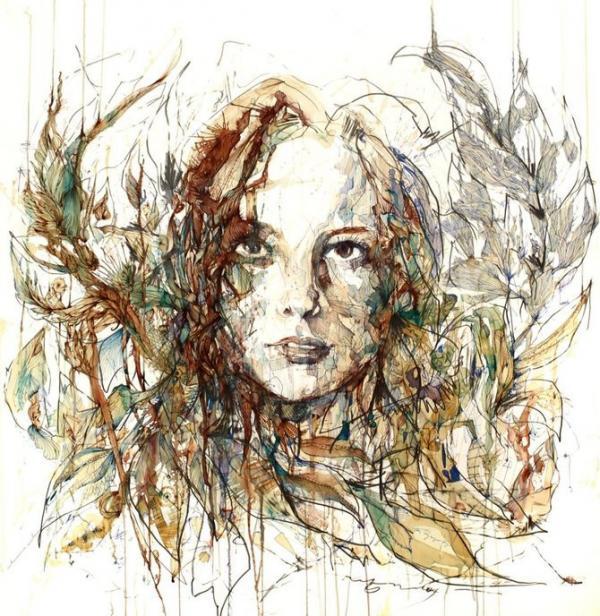 Carne Griffiths’distinctive delicate and expressive style of mark-making, clearly influenced by artists such as Leonardo Da Vinci and Paul Klee, has developed from a twelve-year London-based career as an embroidery designer after leaving art school.